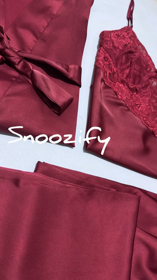 Burgundy Bliss بجامة ستان قطعتين بكُم